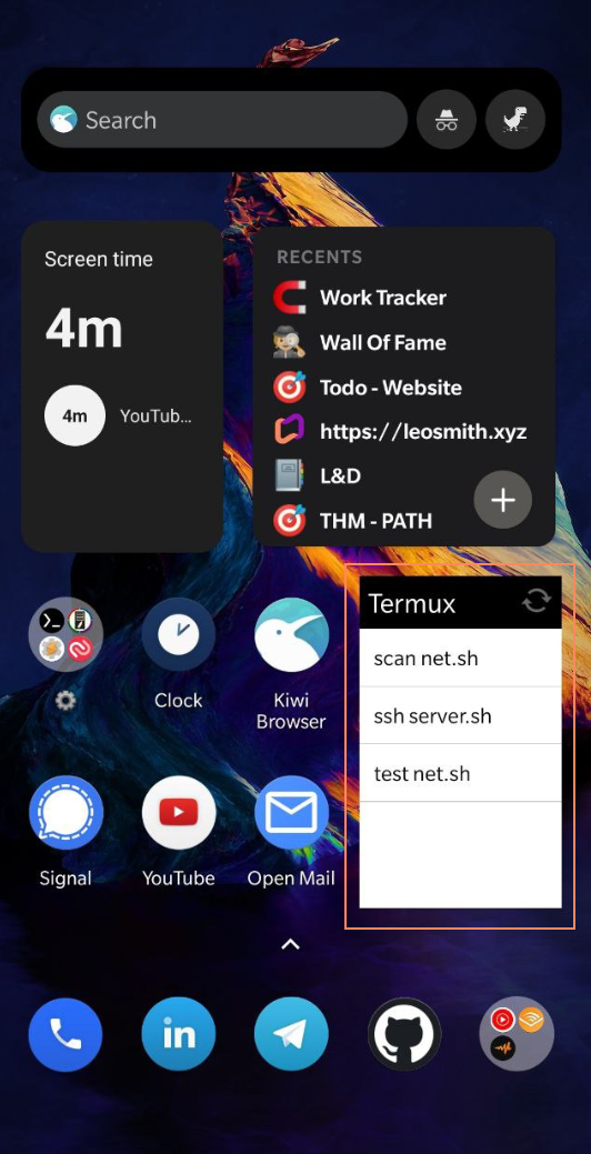Today waiting for my pizza to arrive I was messing with android widgets and I found something pretty cool that I have on my phone that I just didn't realise the termux shortcut widget.