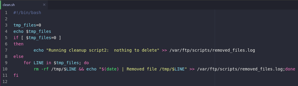 Looking at the script it's clear that it's a simple log cleaning script, by this the script is probably automatically ran by the server so I embedded a reverse shell inside of the script and uploaded it to the server and amazing I got a reverse shell.
