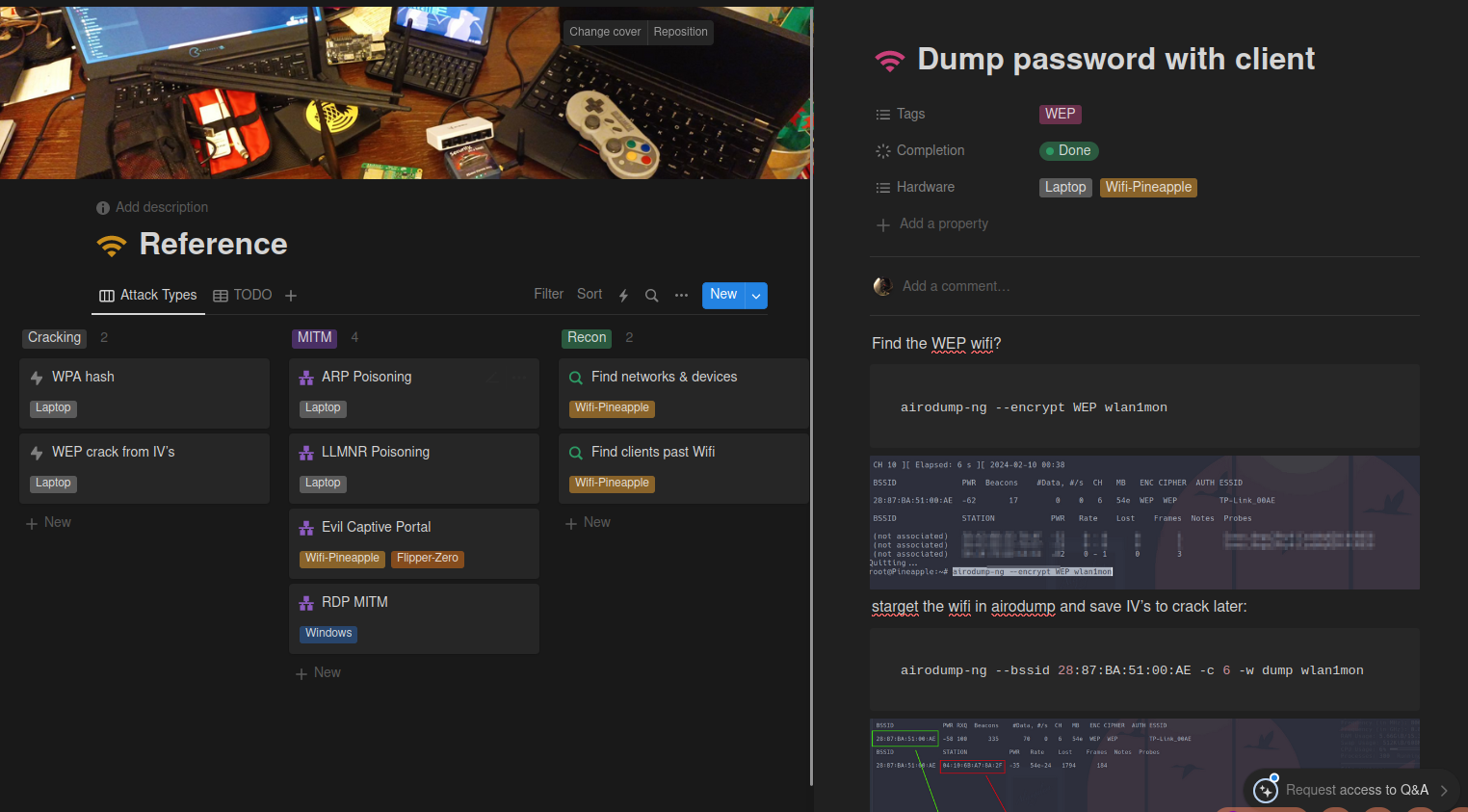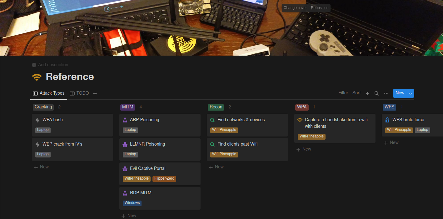 This is less a checklist but more a organised view of vulnerabilities where I can quickly reference things when I forget how to do a certain thing on my wifi-pineapple or flipper zero for example.