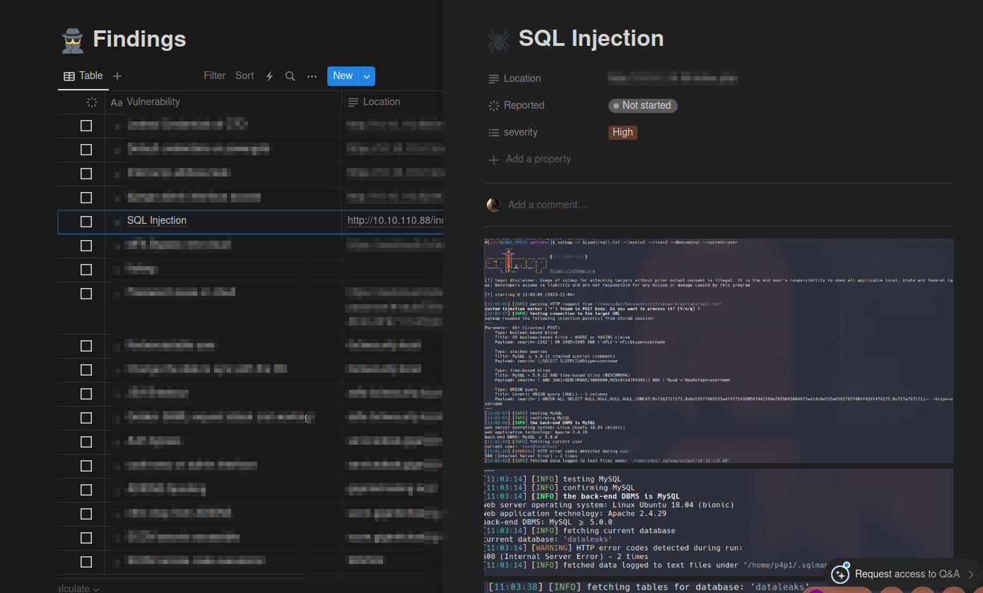 Usually this section starts empty and I slowly add vulnerabilities and how I exploited them great to then copy paste inside of the pentest reports.