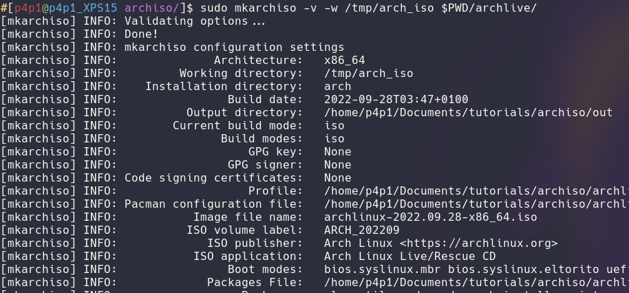 Now you just have to wait a few and the iso will just be there. Pretty easy for what it is. The iso can be found in the newly created /out folder and can be ran or flashed to usb.