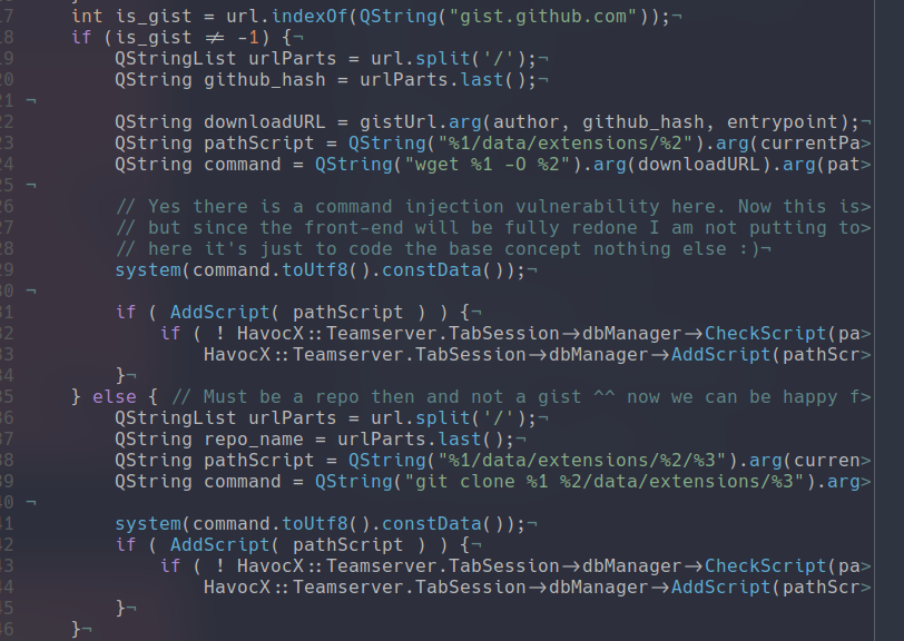 From building that website I then got inspired by BurpSuite's Bapp Store and I thought it would be great to have this inside of havoc. So I took my havoc-modules.json and added a entrypoint system. Since the link inside of the json would either be a repo or directly the file in gists I thought it would be great to have it in such a way where inside of the json we could know what file to import inside of havoc and then have havoc download the file and add it to scripts: