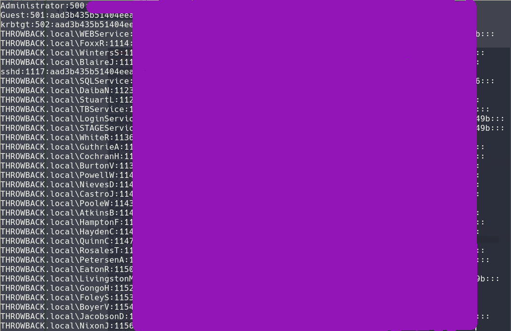 After logging into Throwback-DC01 using older credentials we can see a little message talking about a backup account. That backup account we found it a little before and we know that that account has special rights inside of the Active Directory. Using those credentials we can use the backup account to dump all of the credentials of the current Active Directory using secretsdump.py