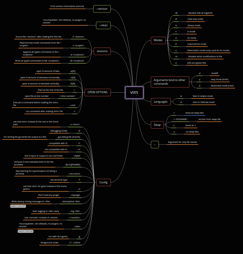 While reverse engineering vim I discovered the different modes vim offer and what functionality other than just opening and editing manually I can use to write / edit files faster.