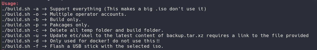The build command actually has a few different options you can use to streamline the experience and configure specific things on the .iso.