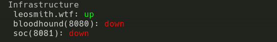 The final feature of conky is the infra monitor by default conky will do a curl command on each value present in the $HOME/.p3ng0s.json file setup from the ssh_glue.py section above.