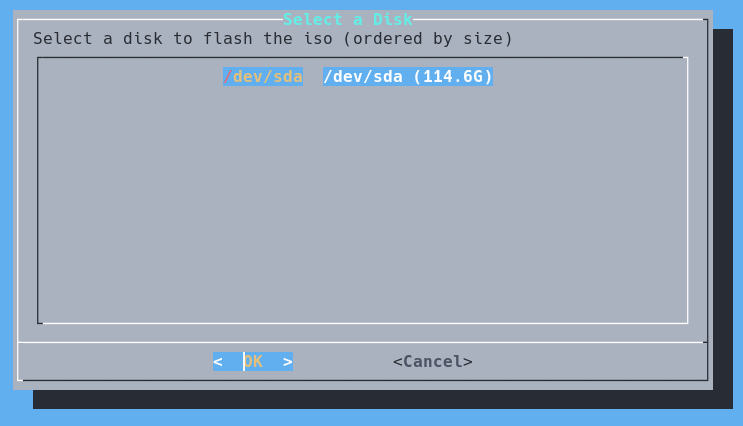 The first two steps are quite simple. You select your USB and the .iso inside of the menu.