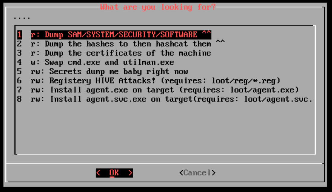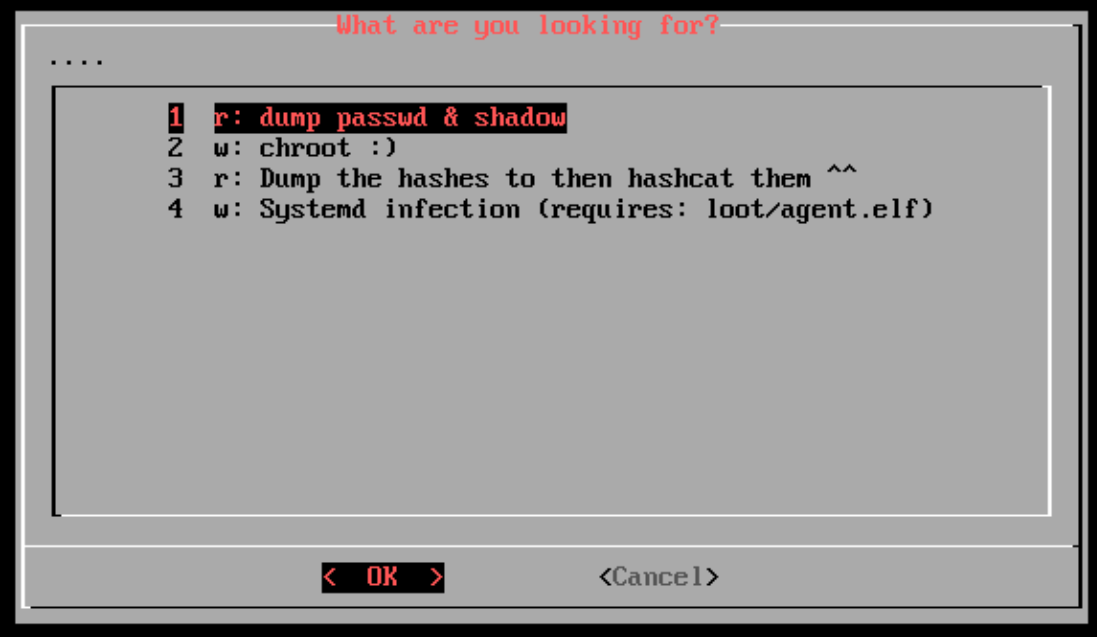 p3ng0s.iso comes pre-built with a dropbox systemd target triggered if a dropbox/ folder is found inside of the LOOT partition. The project code is located in overlay/airootfs/etc/p3ng0s/dropbox/. The idea behind that feature was during physical engagements dropping a raspberry pi is great and all but not very "stealthy" with the .iso I thought what if we turned any computer in a dropbox with a dumb usb stick plus from booting from a computer already part of the clients network you could theoretically dump the hashes of the machine through the dropbox with os_killer.sh (see bellow) and spray them on the network for password reuse. A really easy win from just a USB stick.