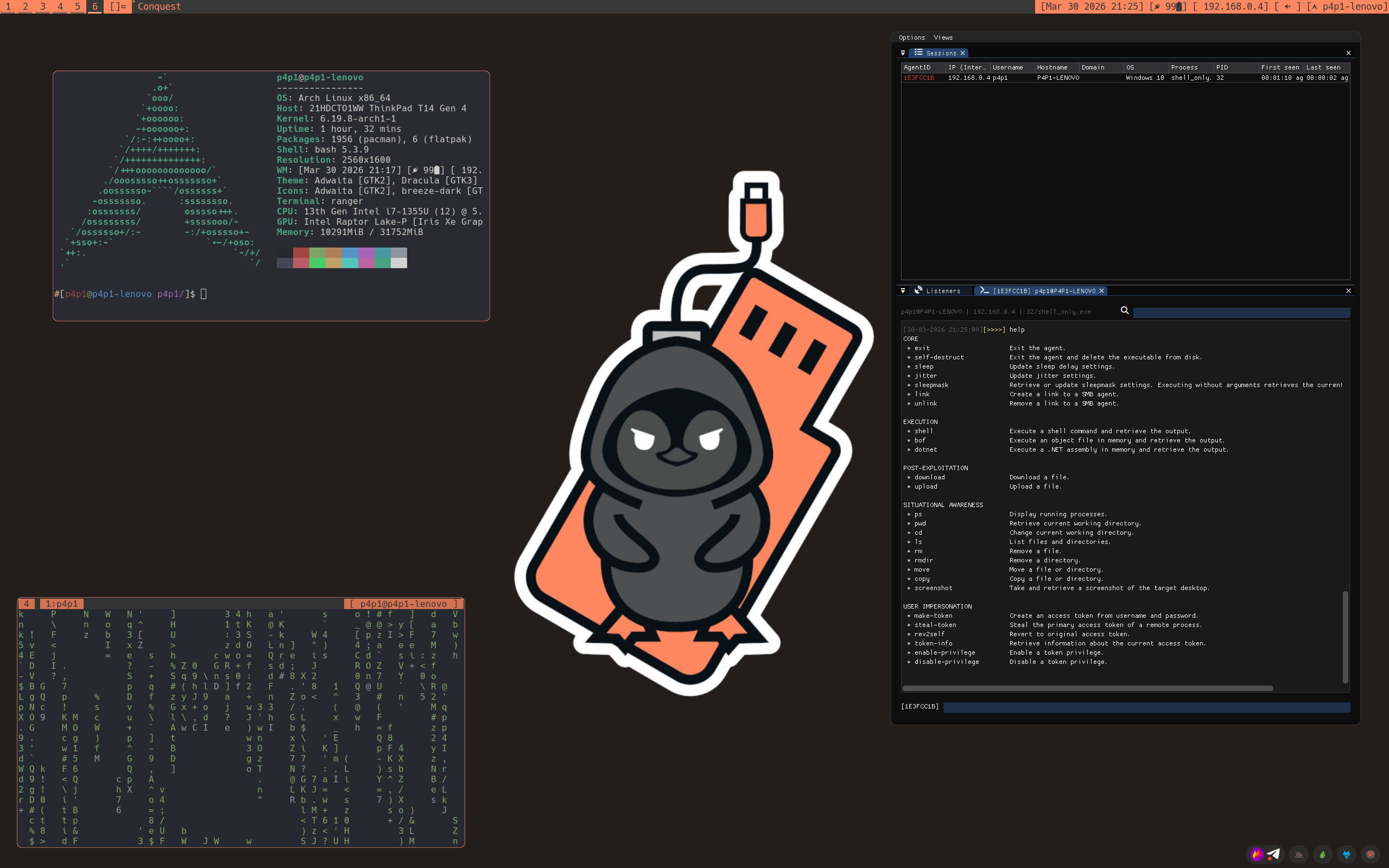 p3ng0s.iso is a physical access red team platform built on Arch Linux. Boot from USB, deploy as a dropbox, crack hashes overnight, or run offline attacks against target machines